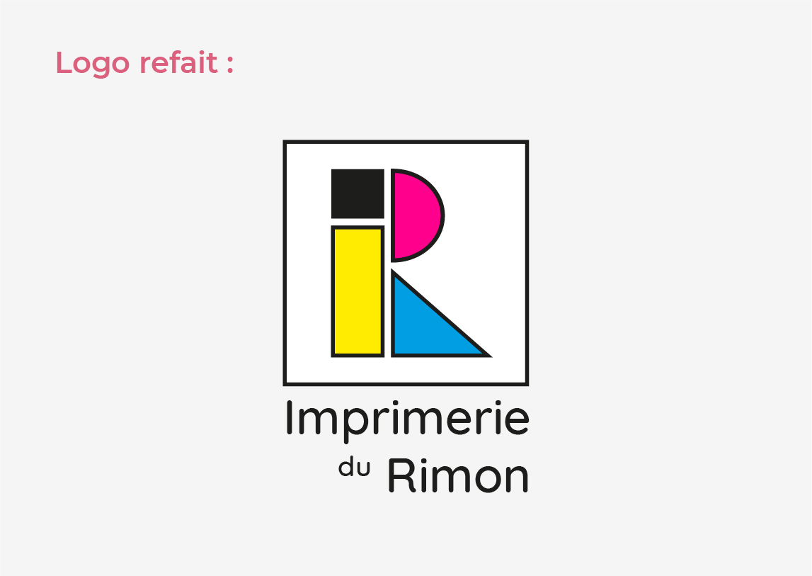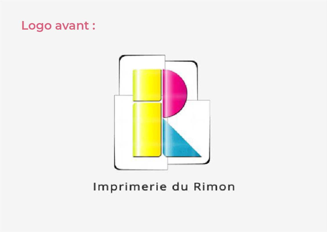 Pour la refonte du logo de l‘Imprimerie du Rimon, des ajustements ont été effectués afin de lui conférer un aspect plus contemporain et dynamique. La lettre R a été redessinée en utilisant des lignes géométriques nettes, ce qui apporte une touche de modernité tout en préservant la reconnaissance du logo d’origine.